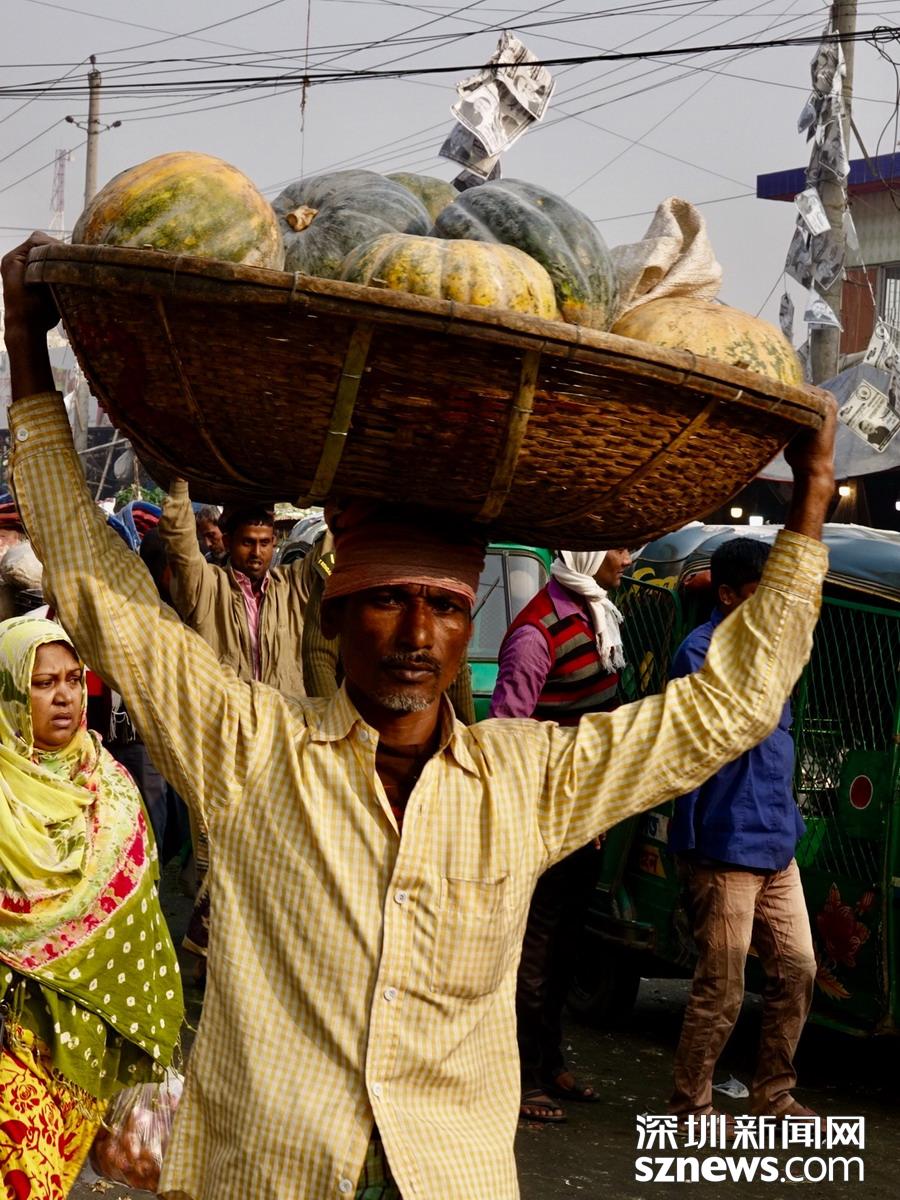 深圳新聞網(wǎng)2019年1月8日訊 在孟加拉,無論城市,還是鄉(xiāng)下,人們頭頂重物的情景,確實是無處不在的。李仁奇攝