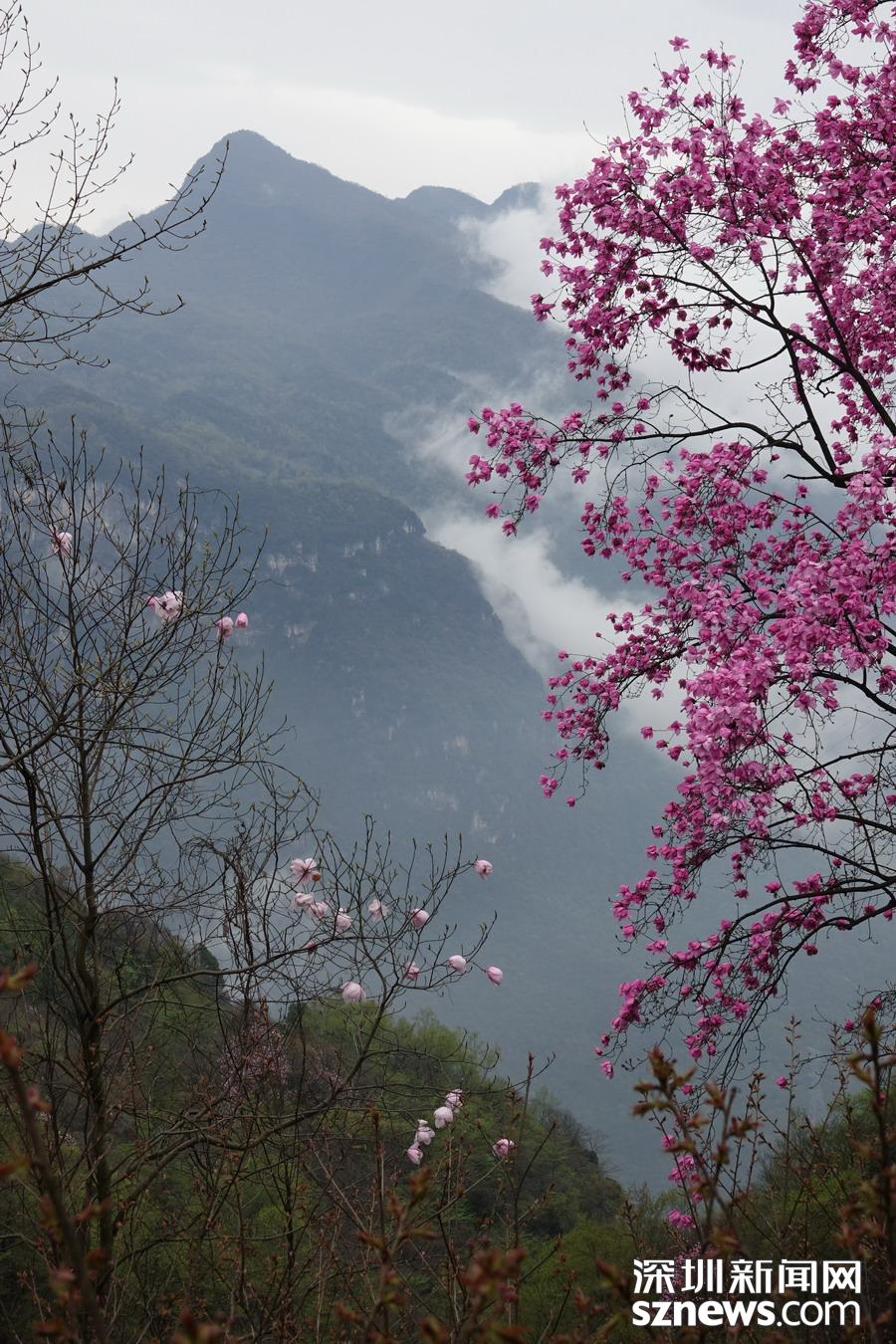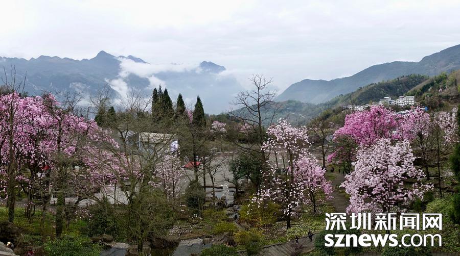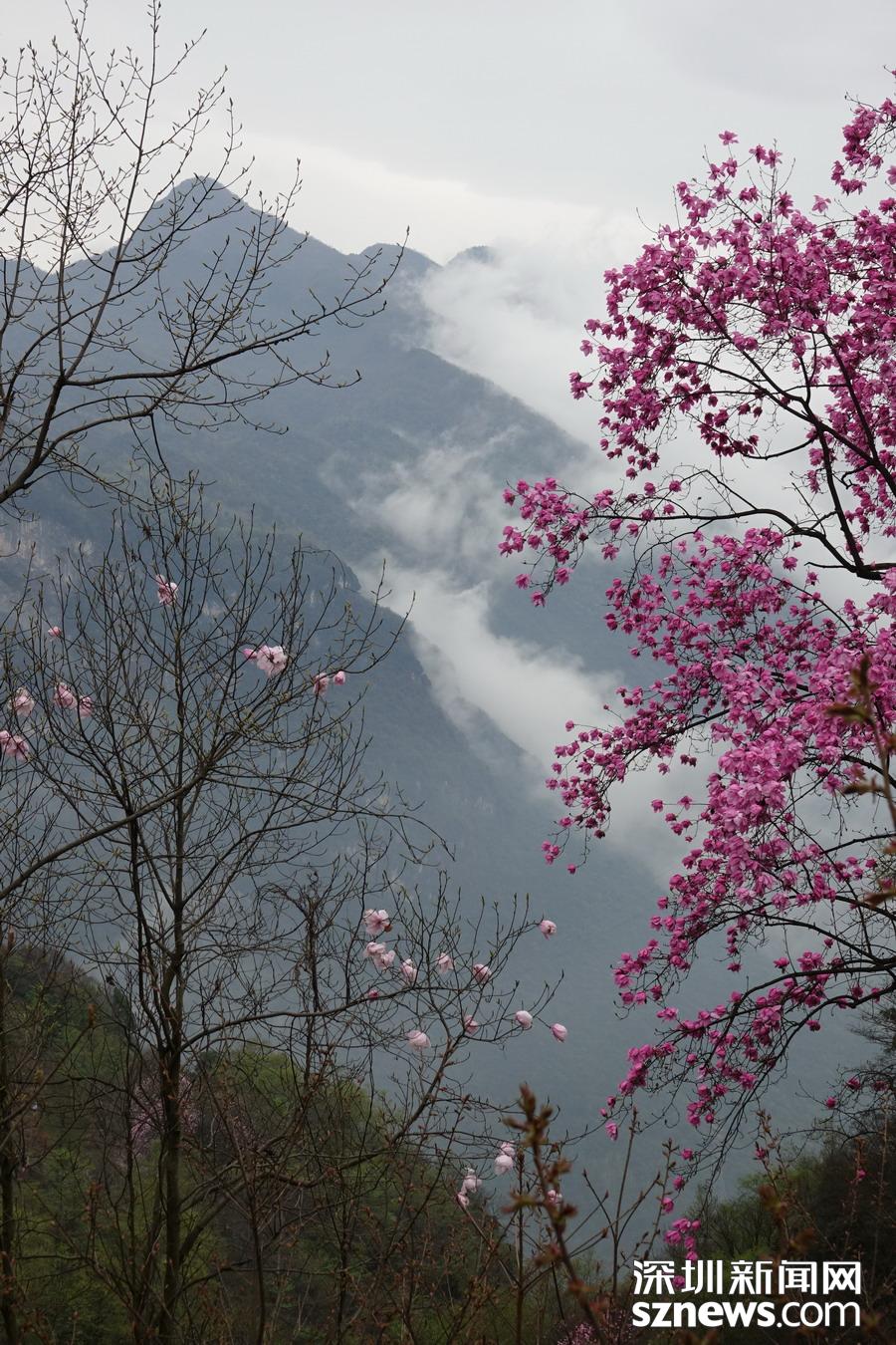北川藥王谷,雨霧濛濛之中觀賞盛開(kāi)的辛夷花,宛若置身仙境......李仁奇 攝
