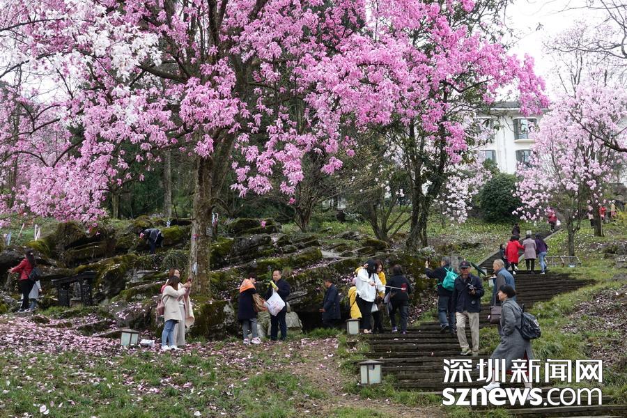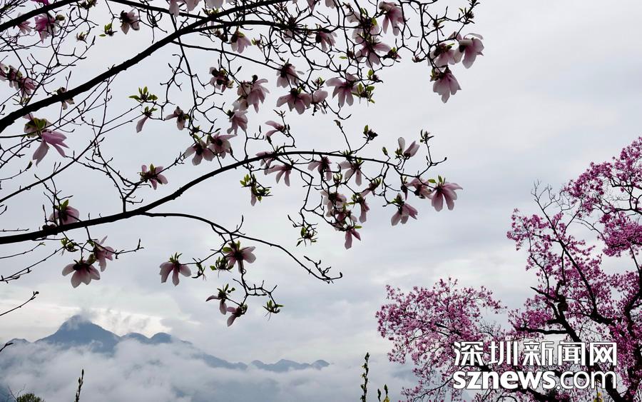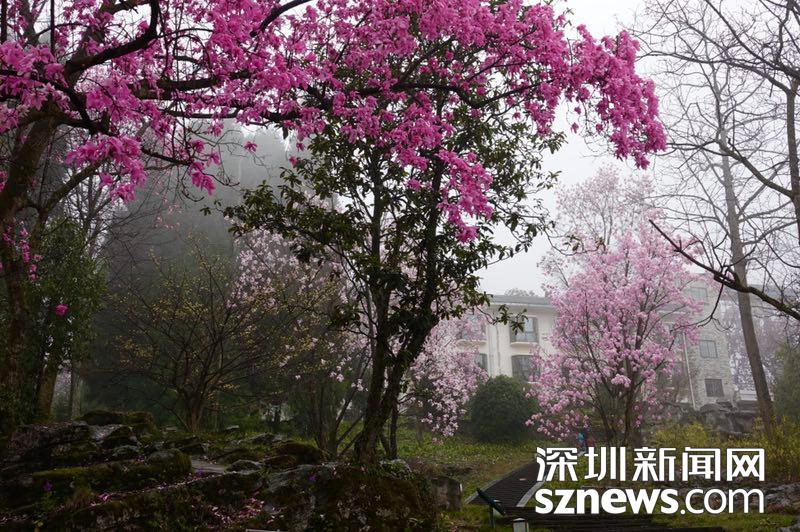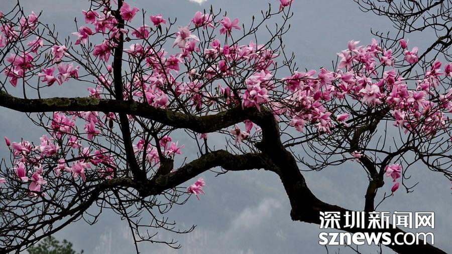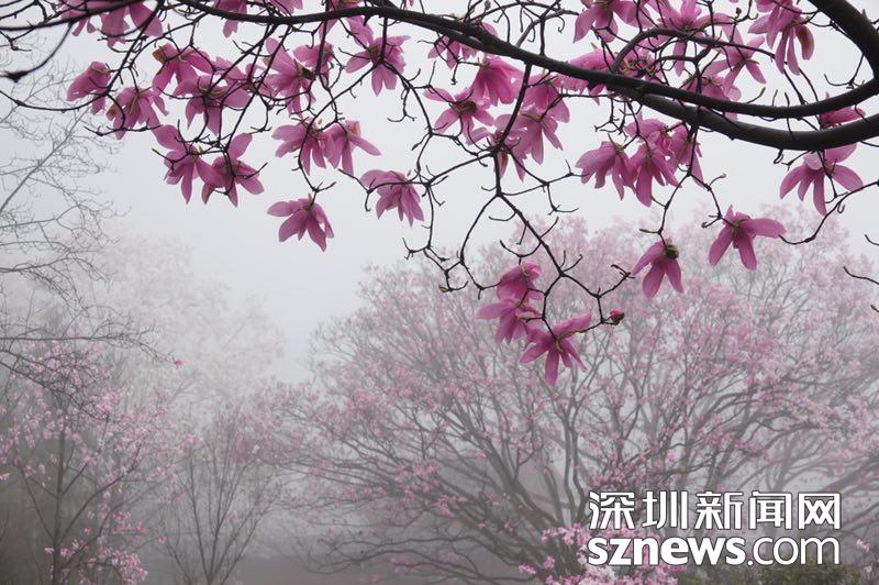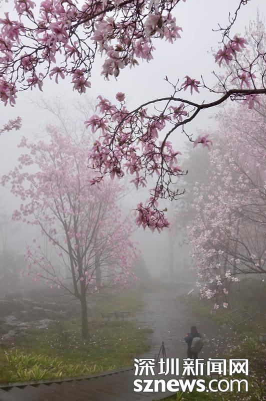 雨霧濛濛之中觀賞盛開(kāi)的辛夷花,宛若置身仙境......李仁奇 攝
