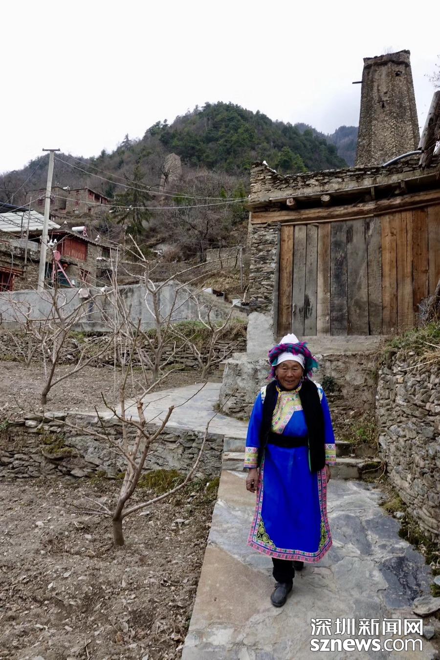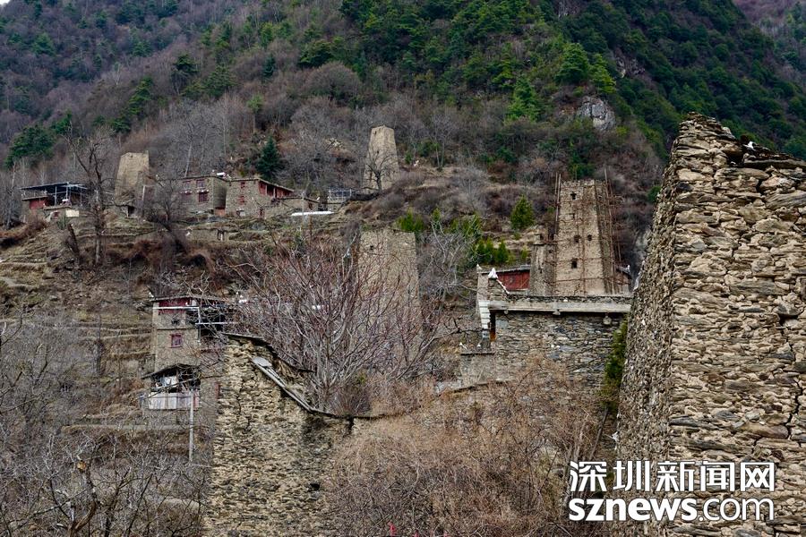 黑虎羌寨古稱“黑貓寨”,修建于唐代以后。是當?shù)匾恢甲逍〔柯錇榈钟练謹_建起來的“邛籠”(石砌碉樓)。古寨中現(xiàn)在留存高高矗立的十一座羌碉,保持著當年風煙滾滾的御敵氣勢。李仁奇 攝