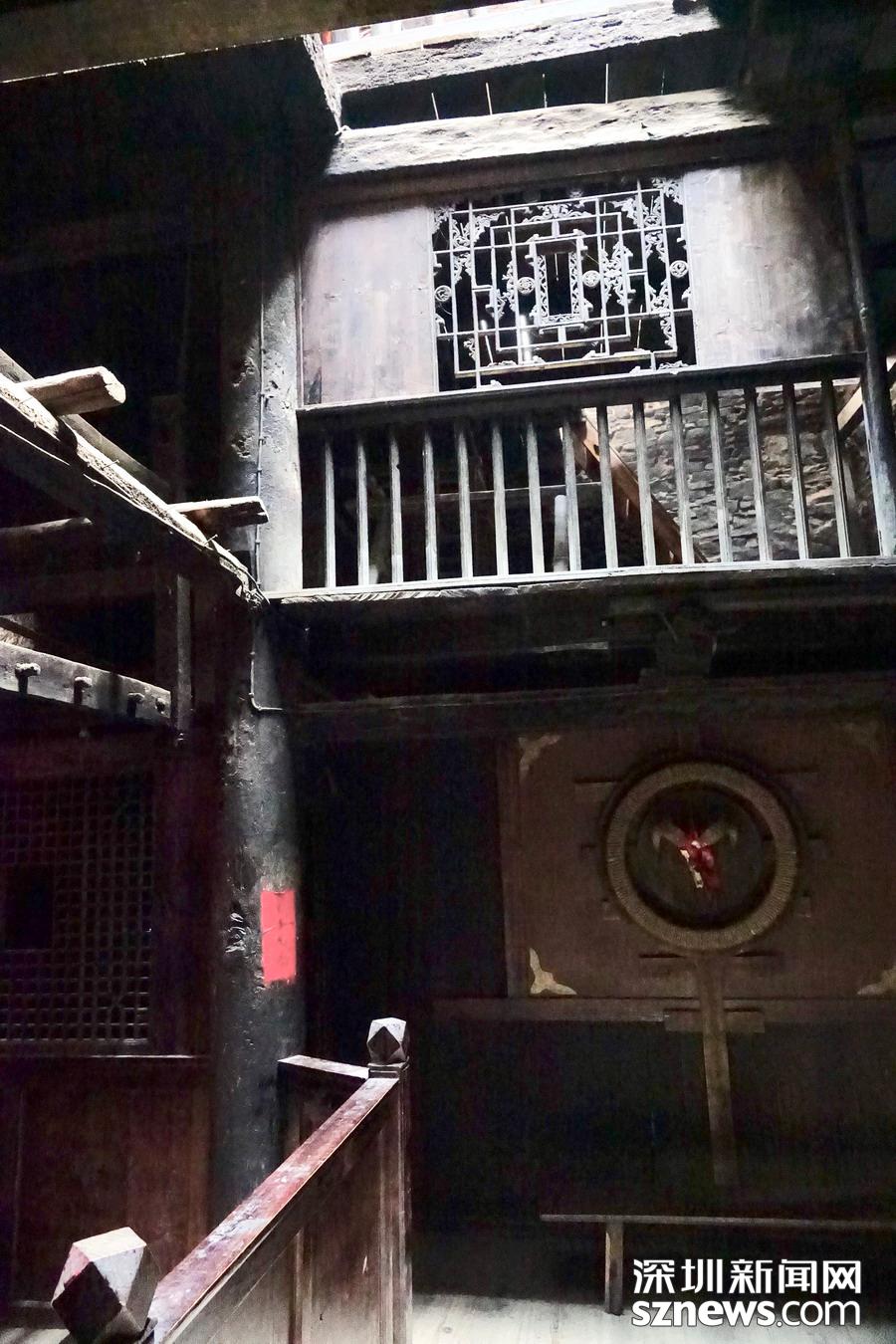 碉樓是整個寨子的標志性建筑,目前僅存兩座,一座是陳仕明家的住宅,另一座雄踞在寨子對面的河岸上。碉樓分為9層,高30米左右,各層四方開有射擊窗口,頂樓的鐘孔是作為傳遞消息用的。李仁奇 攝