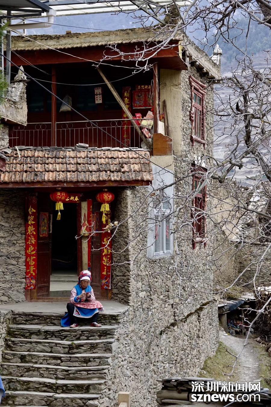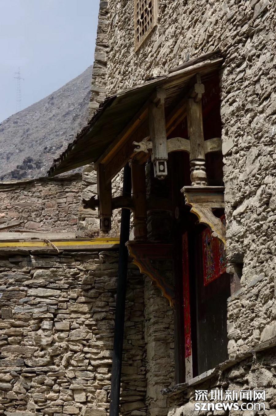 民居內房間寬闊、梁柱縱橫,一般有二至三層,上面作為住房,下面設牛羊圈舍或堆放農具,屋內房頂常壘有一"小塔",供奉羌人的白石神(一塊卵狀白色石頭)。李仁奇 攝