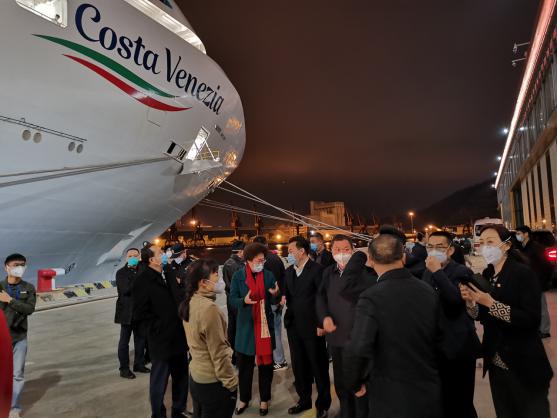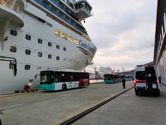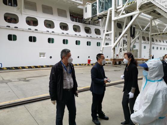 為確保1.26清晨電視電話會(huì)議順利召開,郵輪母港工程師連夜趕回公司調(diào)試設(shè)備;港口值班經(jīng)理尹犇接到海關(guān)急需手持式體溫測量儀的消息后,凌晨2點(diǎn)騎自行車前往公司將三臺(tái)手持式體溫測量儀交接到海關(guān)人員手中,為海關(guān)排查歌詩達(dá)威尼斯號(hào)郵輪旅客體溫做好保障工作,深夜疫情下的街道顯得格外冷情。