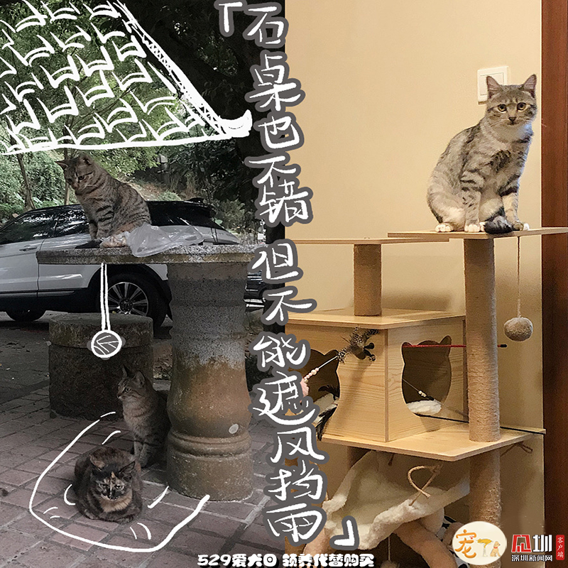 外面的世界再精彩,也比不過一個能遮風(fēng)擋雨,沒有車流、毒藥威脅,三餐穩(wěn)定、四季如春的容身之處,更何況,這里還有比石桌更有趣的貓爬架和比落葉更好玩的小玩具?,F(xiàn)在“高高在上”“作威作?!钡呢堖?,也是花光了一生所有運氣,才能在無法獨自生存的小時候,遇見一個愿意照顧TA一生的“兩腳獸”。