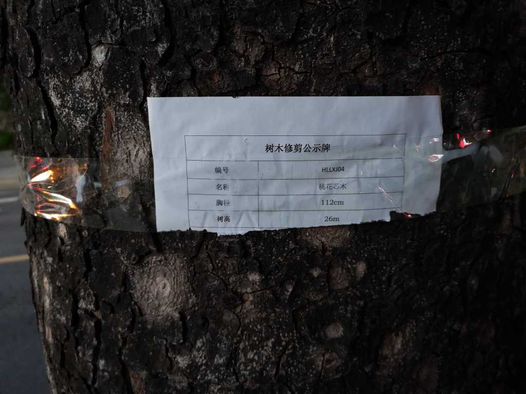將要被修剪的行道樹(shù)上貼著的公示牌市民拍攝