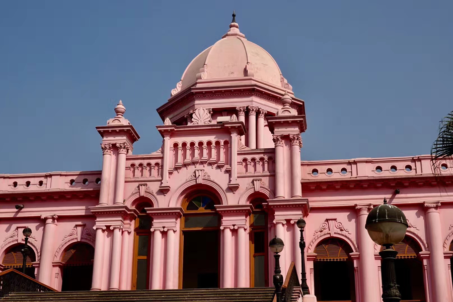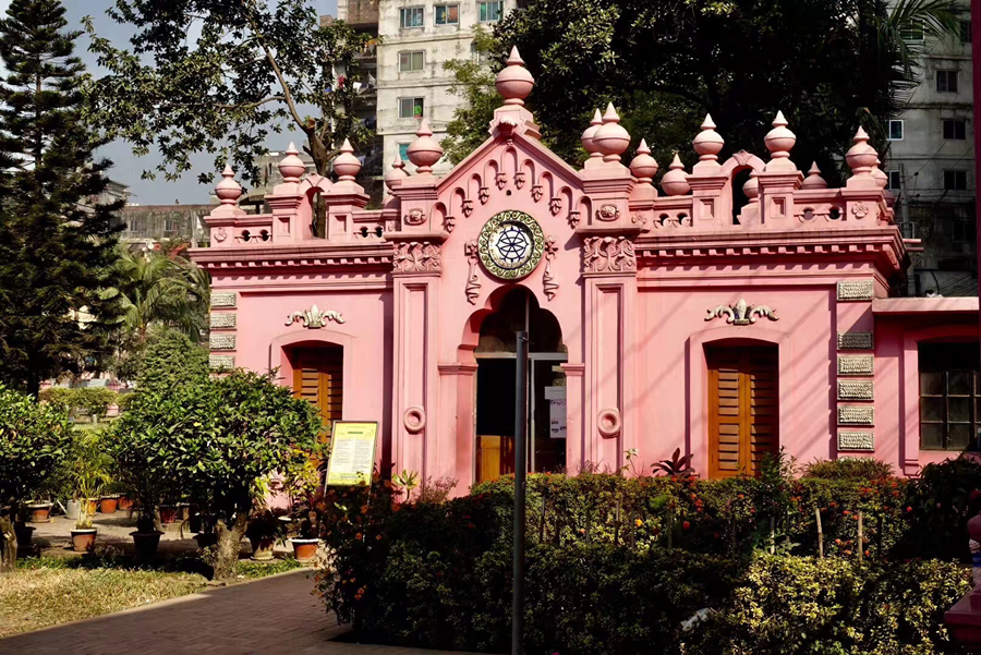 距孟加拉恒河渡口不遠的地方有一座粉紅色宮殿式的豪華建筑。那是1872年一位名叫阿赫桑曼濟勒的地主在法國人留下的倉房基礎(chǔ)上改建的私邸,后來曾在一次龍卷風(fēng)襲擊時受創(chuàng)。李仁奇 攝