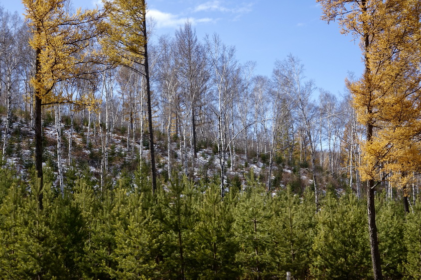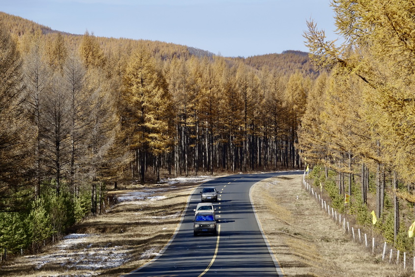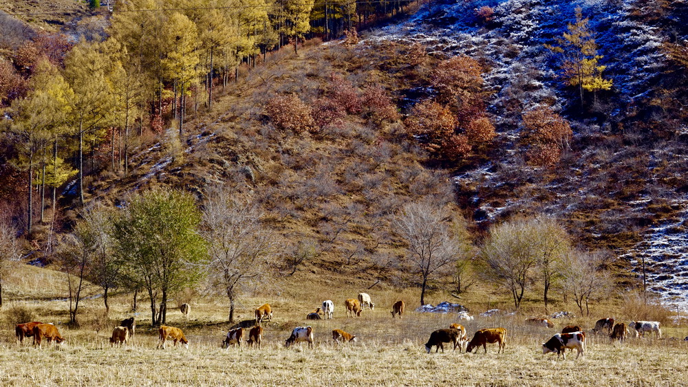 到了10月中旬,這里的草原大多已經(jīng)泛黃,樹(shù)葉也大多枯萎,但收獲季節(jié)的一片金黃仍不失為一道美景。李仁奇攝。
