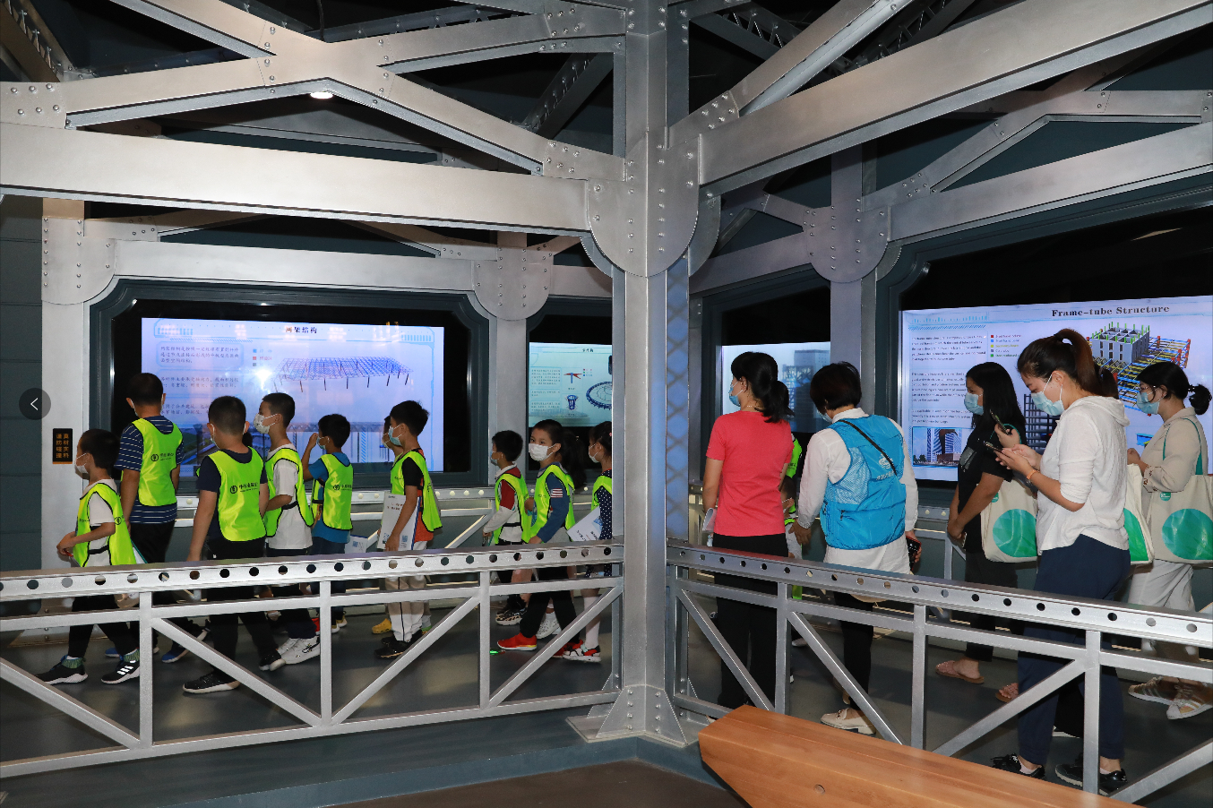 序廳、歷史廳、科技廳、互動廳、未來廳,每一個展廳都給大家?guī)聿灰粯拥捏w驗。大小朋友們在老師的帶領下了解世界鋼結構的發(fā)展歷程、探尋中國鋼結構的崛起之路、感受鋼結構文明的氣韻、展望鋼結構的未來。