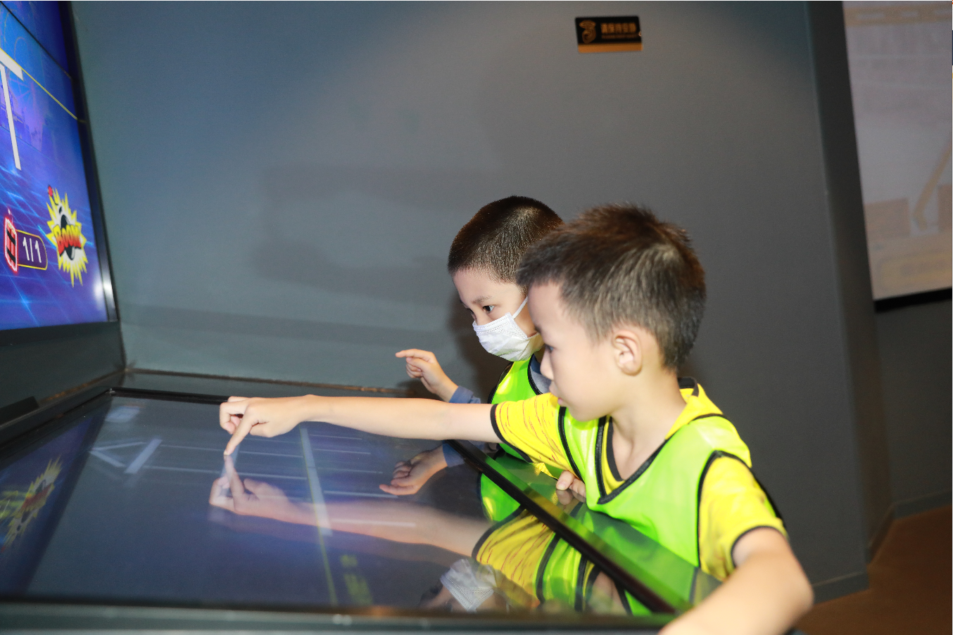 博物館中最讓小朋友流連忘返的當屬互動廳。孩子們爭先恐后的玩著鋼結構爆破游戲。通過VR互動,身臨其境的感受著站在600米高度的深圳平安金融中心頂層施工的情形?!盎怼变摻Y構設計師、建造師,完成鋼結構建筑的設計、制造與安裝全過程,并獲得《鋼結構小小工程師星級考核》證書。