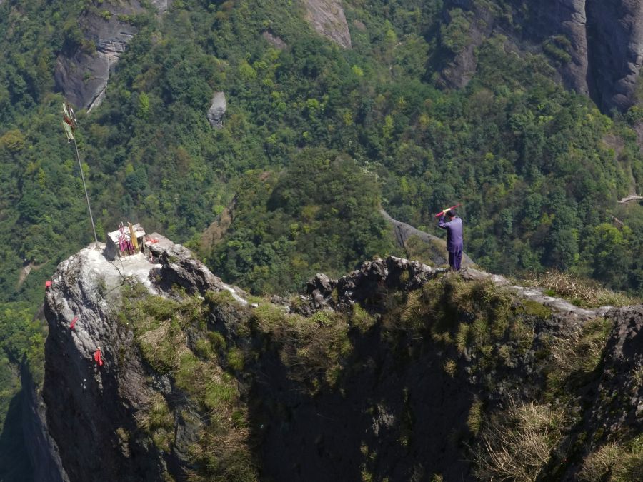 八角寨是崀山主峰,海拔818米,因峰頂有8個(gè)翹角而得名。李仁奇 攝