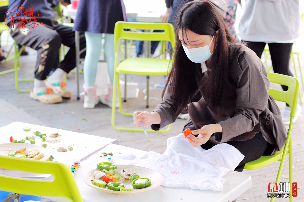 深圳新聞網(wǎng)記者張藝齡正在嘗試“蔬果染”。