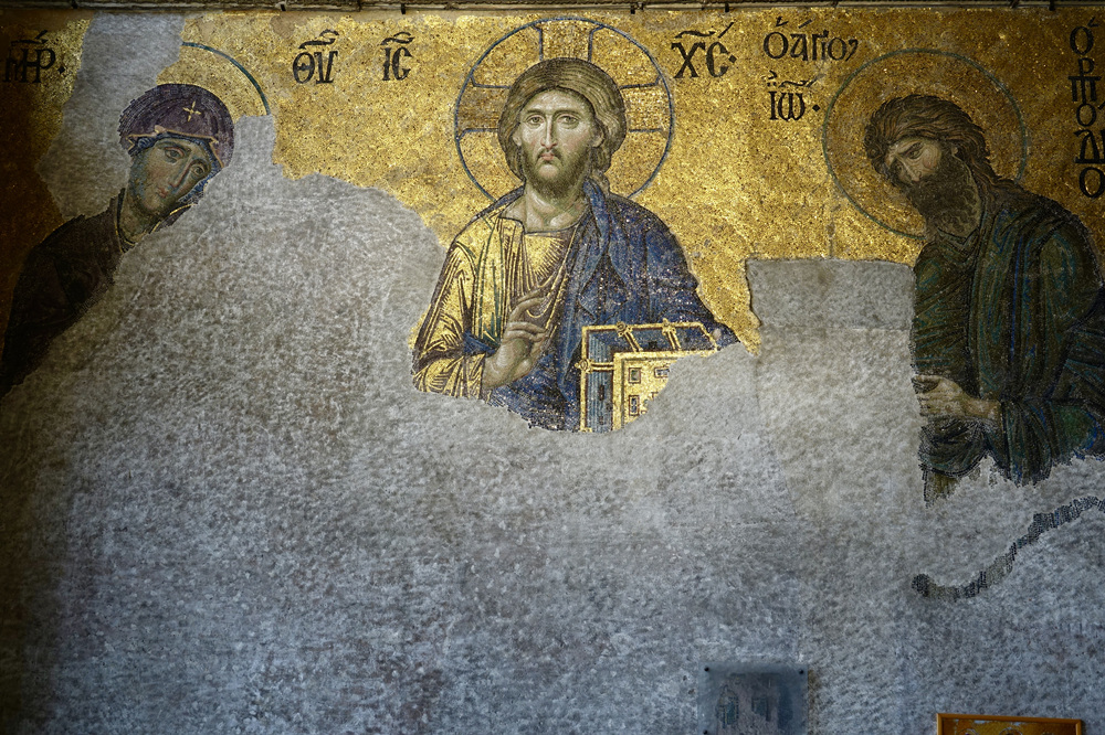 1935年,第一任土耳其總統(tǒng)、土耳其國父穆斯塔法·凱末爾·阿塔圖爾克下令將圣索菲亞大教堂變?yōu)椴┪镳^。覆蓋在鑲嵌畫上的灰漿由專家煞費(fèi)苦心地擦去,地面飾品得以展示。改名后的阿亞索菲拉博物館實際上的展品主要就是建筑物自身以及其中的鑲嵌畫藝術(shù)品。李仁奇 攝
