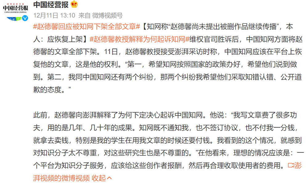 法學(xué)教授勝訴后論文被下架 趙德鑫:中國知網(wǎng)必須改革