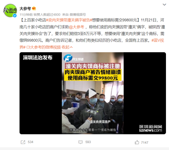 (相關(guān)報道:讓眾多店家崩潰的潼關(guān)肉夾饃商標許可費國家知識產(chǎn)權(quán)局回應(yīng)了)