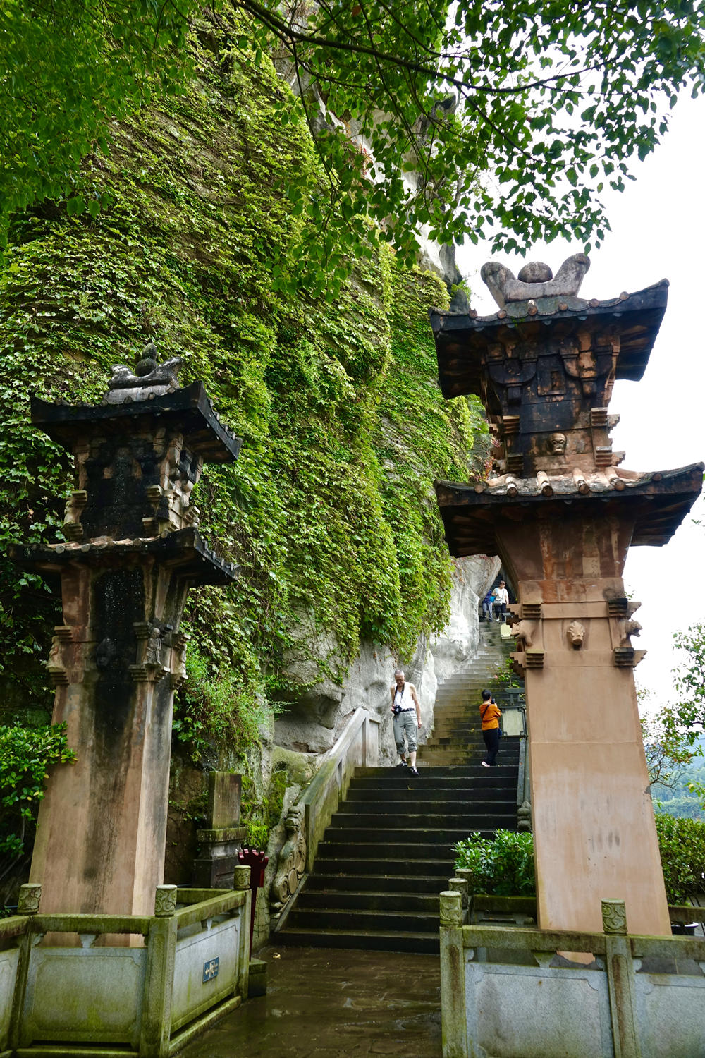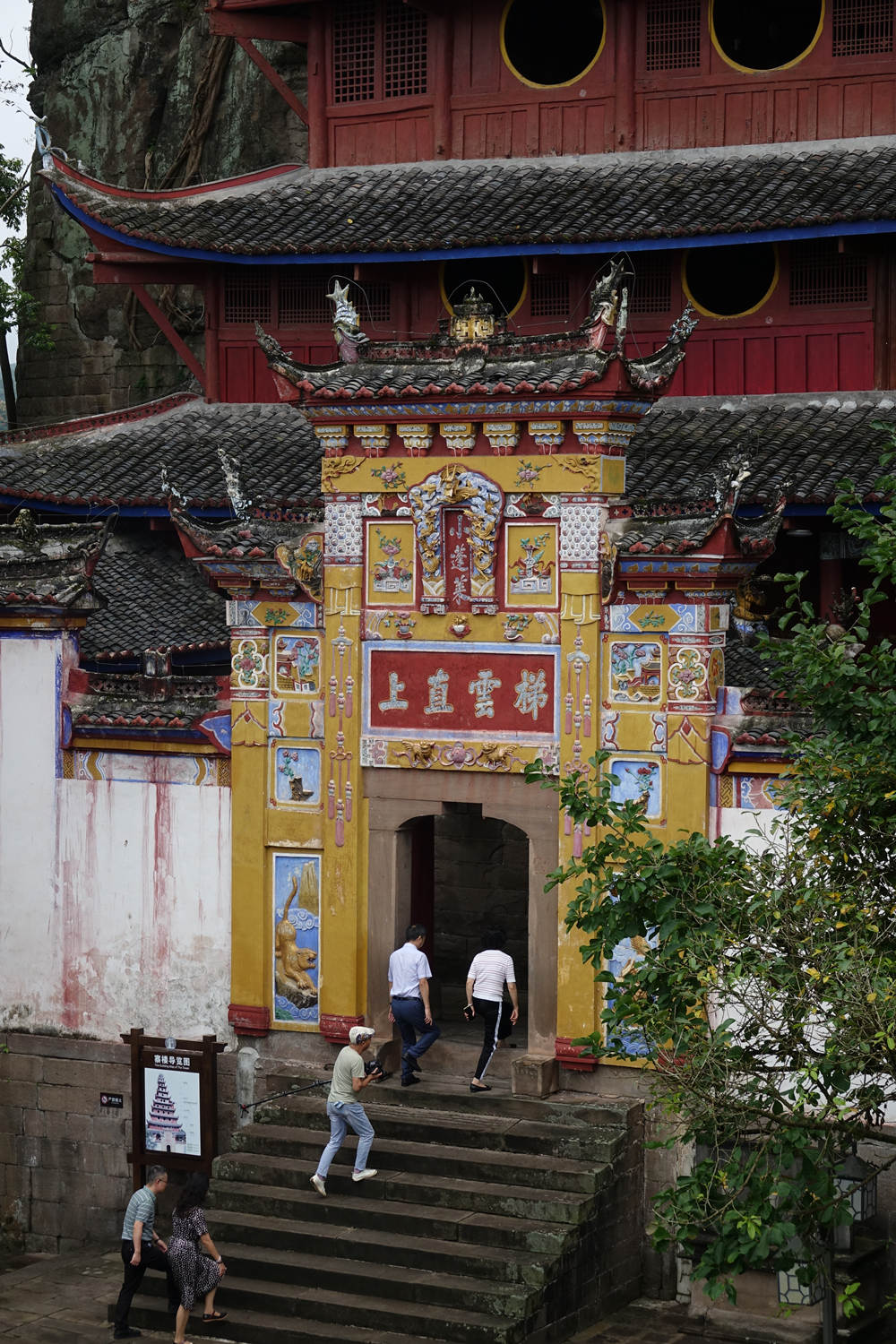 全寨共分兩部分,山下9層和山上3層錯(cuò)落有致,從遠(yuǎn)處眺望12層樓重檐高聳,渾然一體,宏偉壯觀,共高56米,閣內(nèi)每層石壁上均有題詠。李仁奇 攝