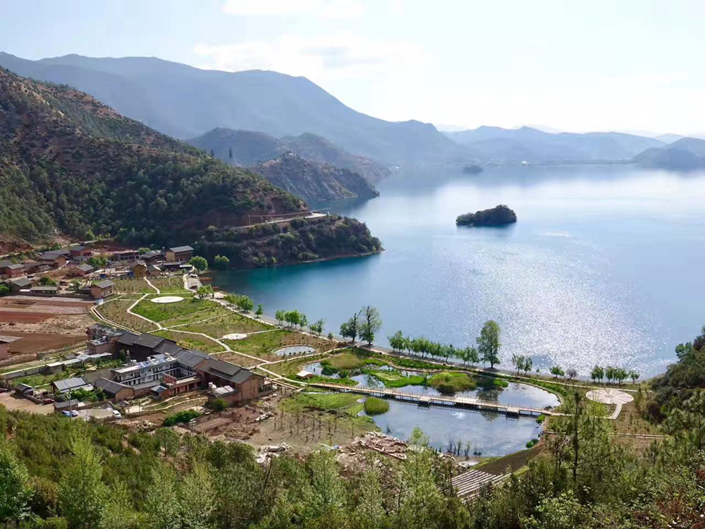 當(dāng)?shù)厝朔Q瀘沽湖為“謝納咪”,意為大海、母湖,從高處鳥(niǎo)瞰,如一只展翅的飛燕,被譽(yù)為“高原明珠”。李仁奇 攝