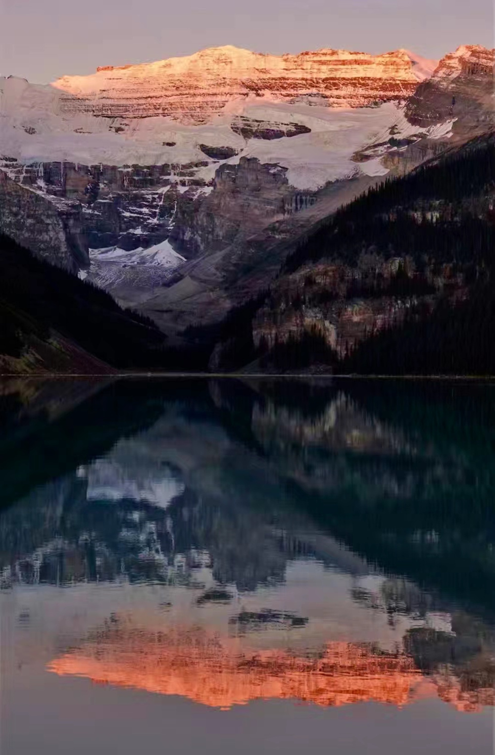 湖水晶瑩剔透,在鋸齒狀的山谷的擁環(huán)下,就像一塊寶玉。這塊“國(guó)寶”被印在加拿大20元的紙幣上。李仁奇 攝