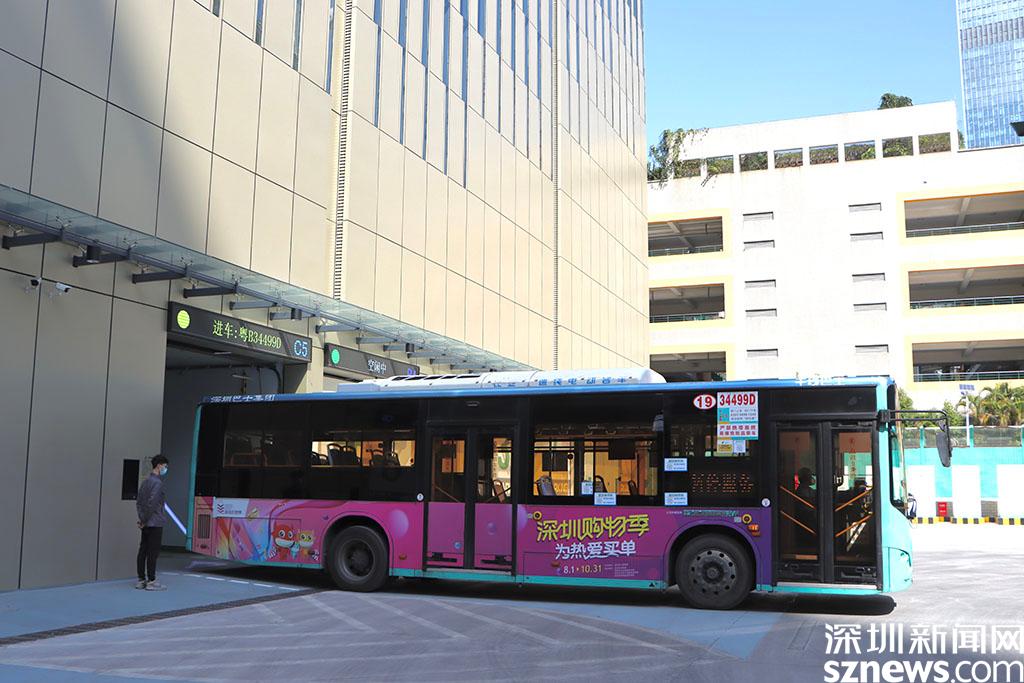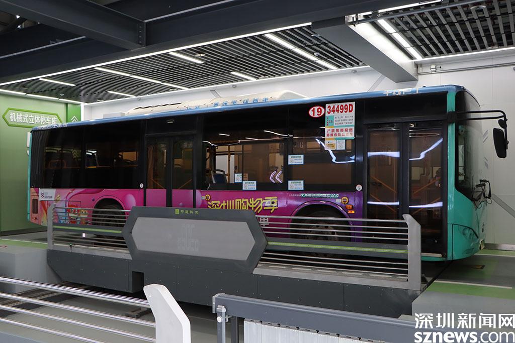 深圳南山中心區(qū)智慧立體公交車庫外觀。