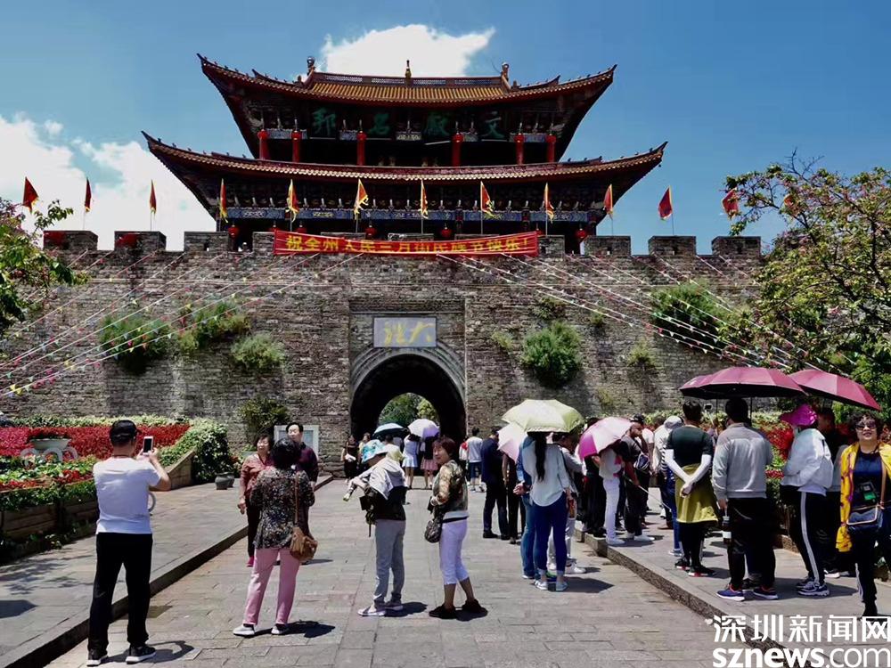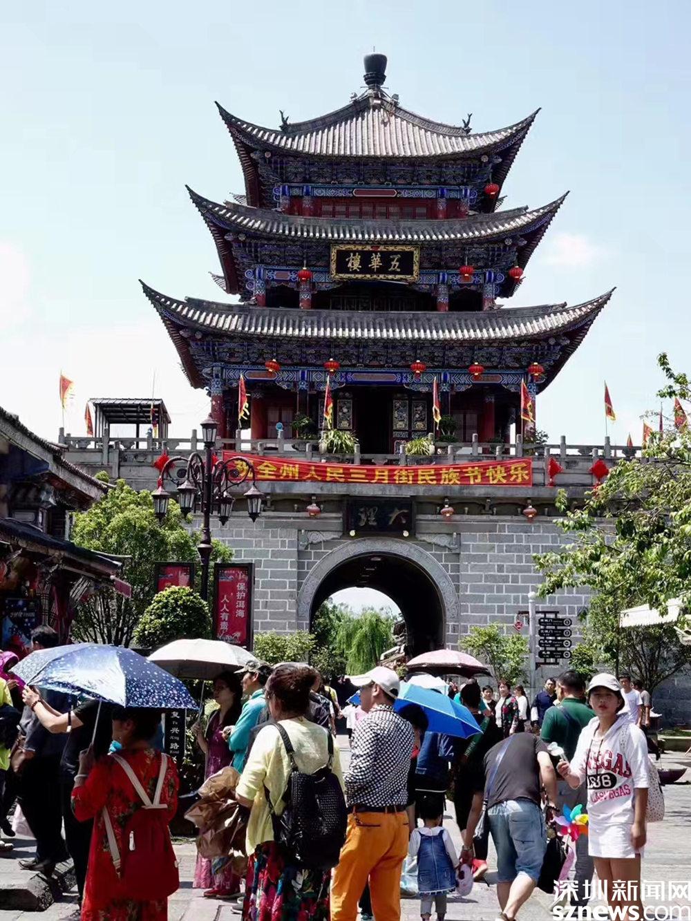 上世紀八十年代以后,大理陸續(xù)在遺留下來的300多米古城墻上重修了四座城門樓和城中心的“五華樓”,重現(xiàn)了古都風采,引來無數(shù)游客。李仁奇 攝