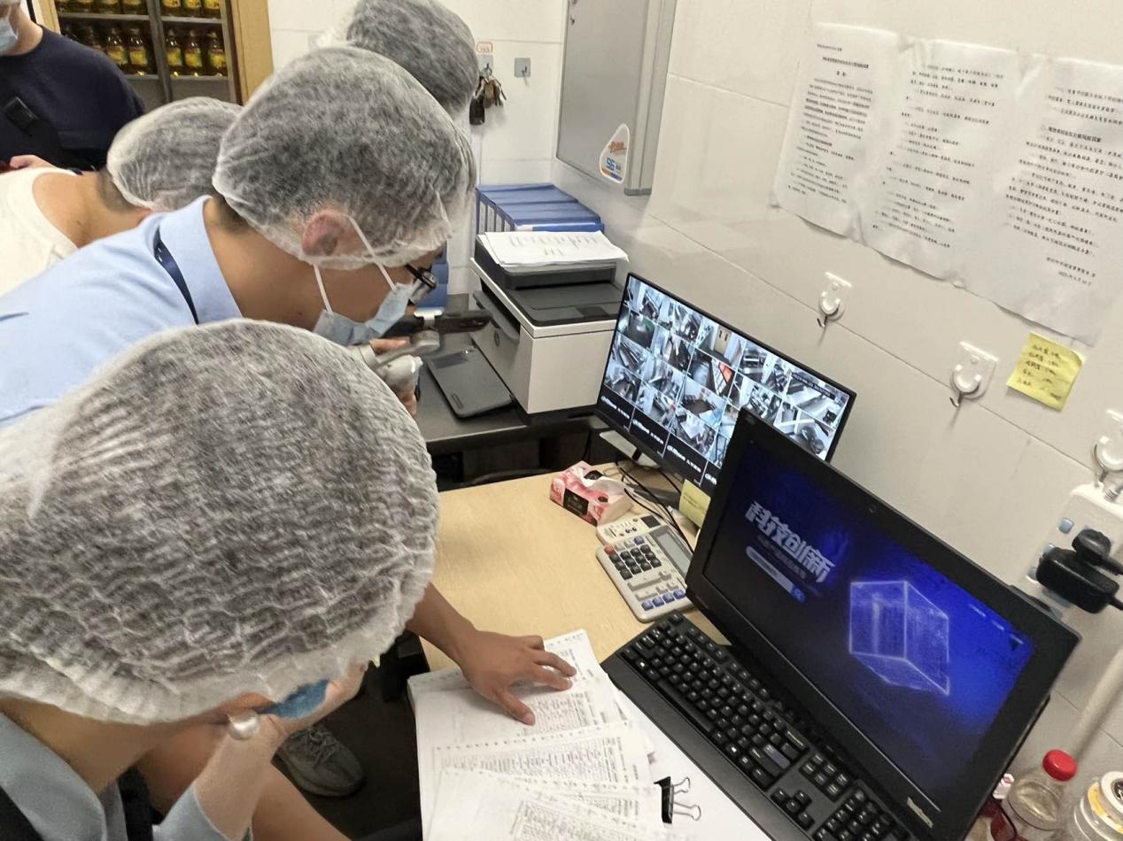 隨后,執(zhí)法人員一行進(jìn)入食堂后廚,對(duì)面點(diǎn)間、儲(chǔ)藏間、清洗區(qū)、冷凍庫(kù)等各分區(qū)進(jìn)行執(zhí)法檢查。經(jīng)查,后廚整體布局合理,其中食材存儲(chǔ)符合規(guī)定且日期均在保質(zhì)期內(nèi);留樣冰箱內(nèi)按規(guī)定保存了近期餐食樣品,留樣品名及時(shí)間標(biāo)注清晰,確保了來源可追溯;清洗區(qū)分區(qū)明確,刀具砧板按照顏色管理,有效避免了交叉感染。此外,在后廚辦公室,執(zhí)法人員查看了索證索票落實(shí)情況及日管控、周排查、月調(diào)度等相關(guān)制度管理資料,各類信息管理較完善。