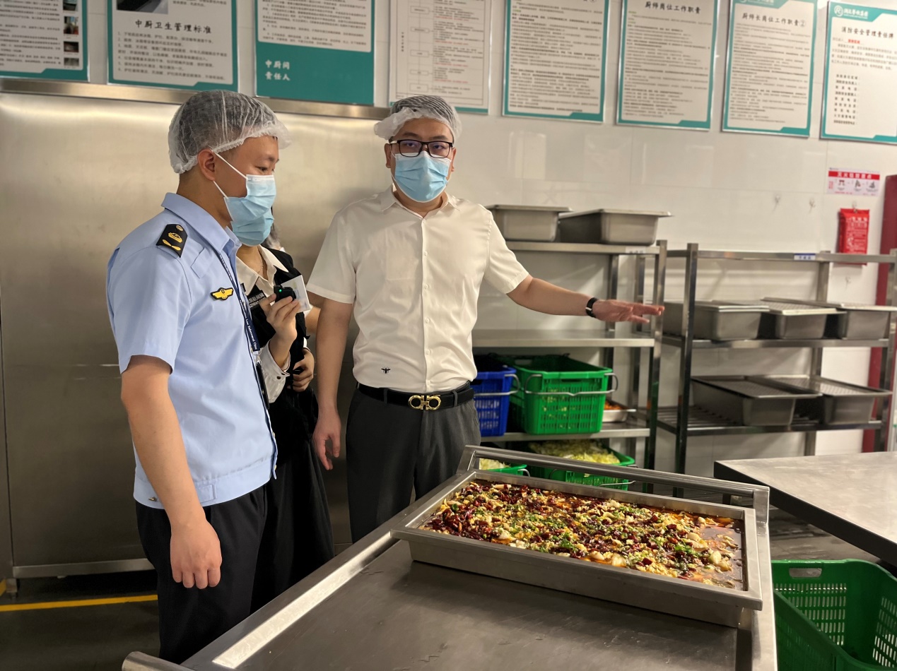 執(zhí)法人員現(xiàn)場對(duì)學(xué)校后廚進(jìn)行詳細(xì)檢查,分別從采購索證索票、進(jìn)貨查驗(yàn)、制作加工、備餐配送、場所和設(shè)施清潔維護(hù)、餐飲具清洗消毒、從業(yè)人員健康管理,制止餐飲浪費(fèi),食品安全總監(jiān)配置履職情況,以及落實(shí)主體責(zé)任的“日管控周排查月調(diào)度”制度等方面進(jìn)行詳細(xì)檢查。經(jīng)檢查,整體情況良好,但存在部分細(xì)節(jié)問題,如水產(chǎn)品刀具分類可更細(xì)致、操作臺(tái)積水需清理、面點(diǎn)間的食材存放需避免陽光直射等,針對(duì)檢查過程中發(fā)現(xiàn)的問題,執(zhí)法人員現(xiàn)場責(zé)令學(xué)校限期整改到位。同時(shí),快檢工作人員對(duì)餐廳使用的食材進(jìn)行了抽檢,結(jié)果均為陰性。