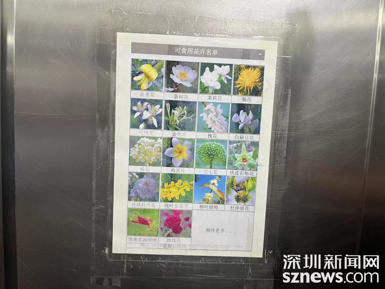冰箱表面張貼了“可食用花卉名單”。