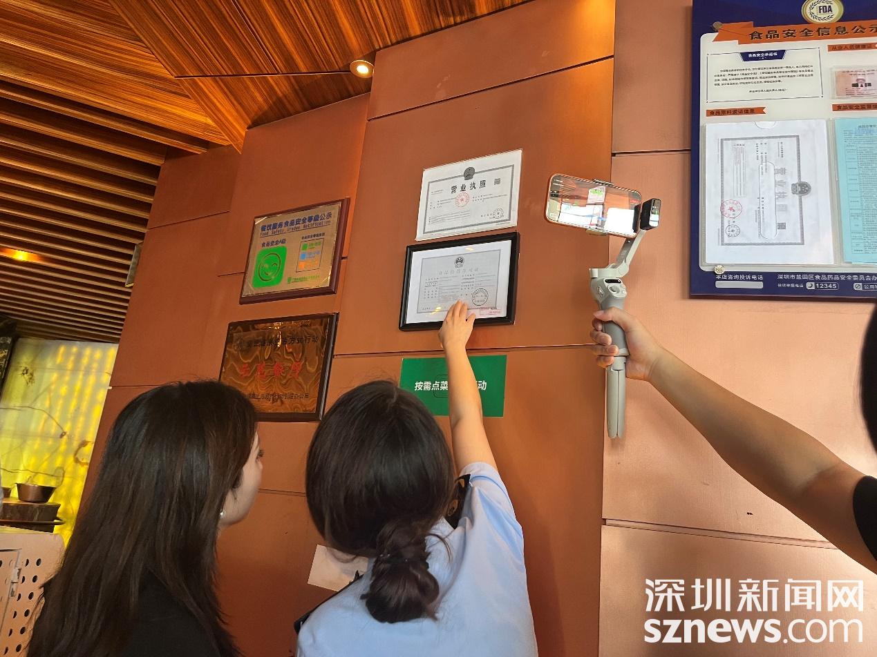 執(zhí)法人員查看食品安全信息公示欄。