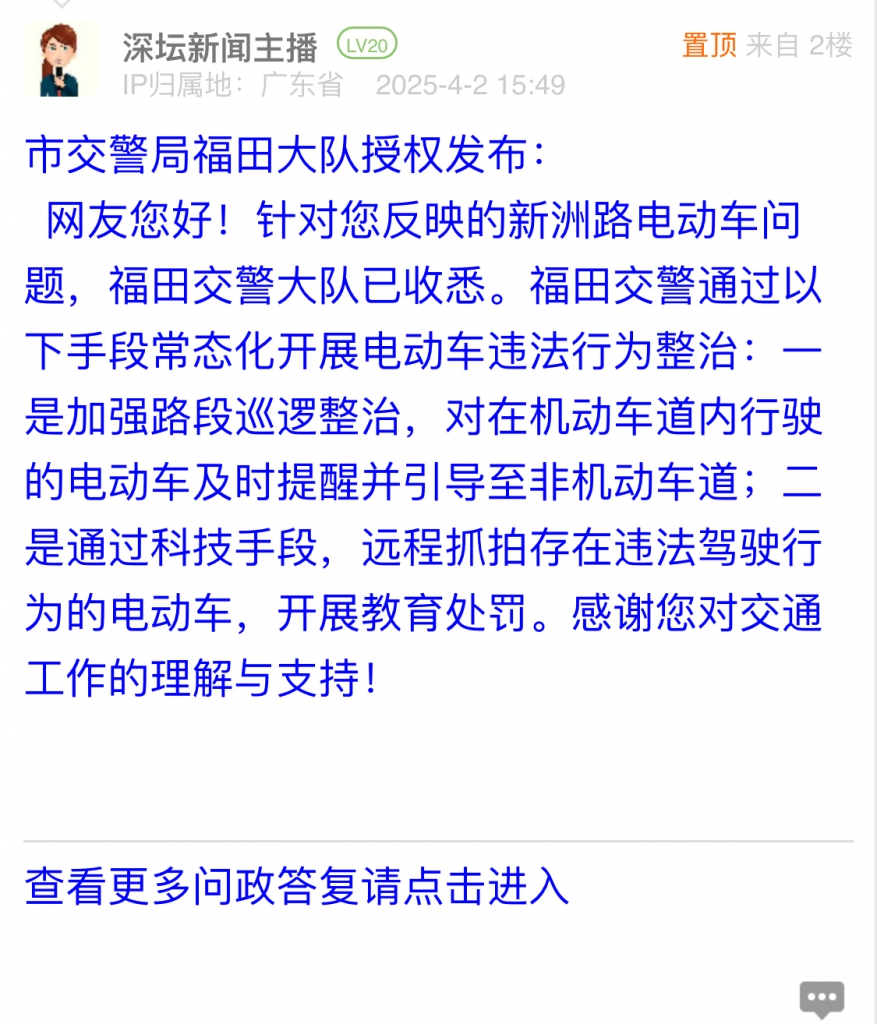 各職能單位如需對網(wǎng)友反映的問題進(jìn)行回應(yīng),可在深圳論壇注冊官方賬號并通過認(rèn)證,回帖進(jìn)行回應(yīng)。