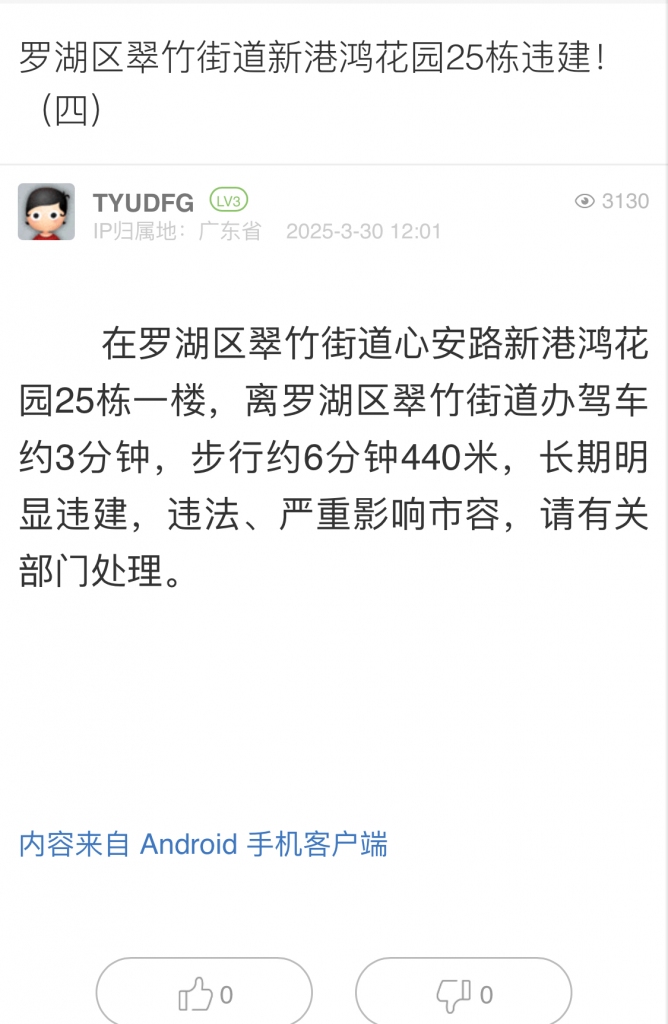 24. 帖文《羅湖區(qū)翠竹街道新港鴻花園25棟違建?。ㄋ模?/a>》