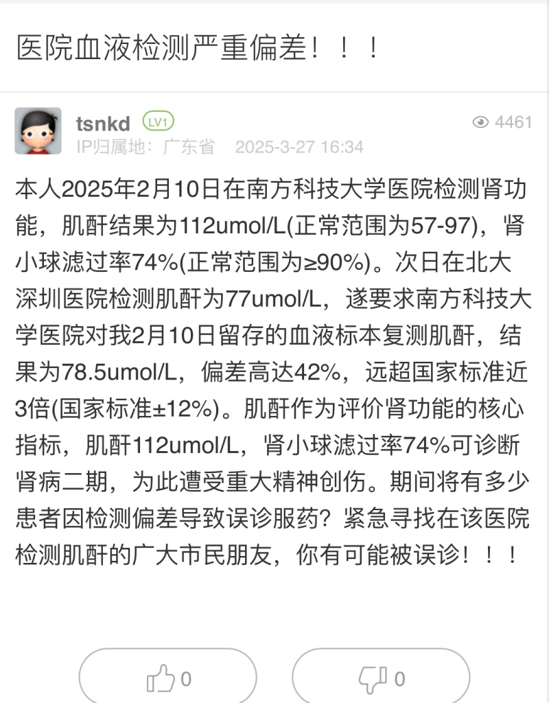 16. 帖文《醫(yī)院血液檢測嚴(yán)重偏差!??!》