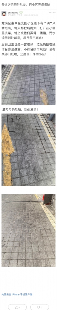 9. 帖文《餐飲店后廚臟亂差,把小區(qū)弄得很臟》