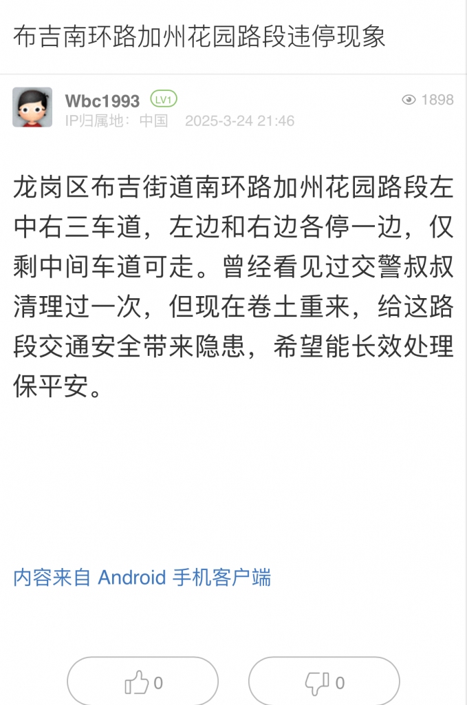 6. 帖文《布吉南環(huán)路加州花園路段違?,F(xiàn)象》