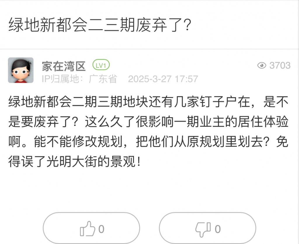 18. 帖文《綠地新都會二三期廢棄了?》