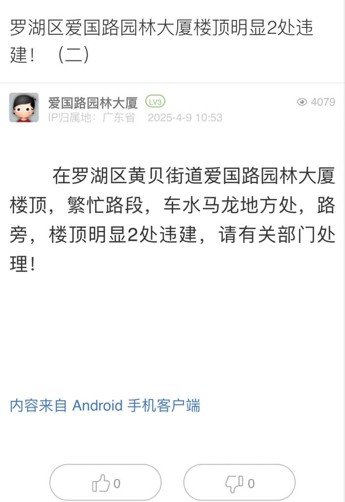 9. 帖文《羅湖區(qū)愛國路園林大廈樓頂明顯2處違建?。ǘ?/a>》