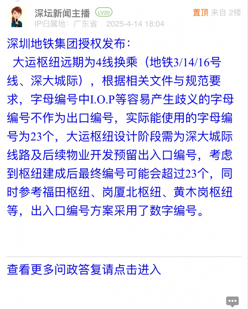 15. 帖文《大運地鐵站地鐵出入口和換乘口數(shù)字編號和地鐵線路編號標志容易混淆》《大運地鐵站出入口編號標志不合理》