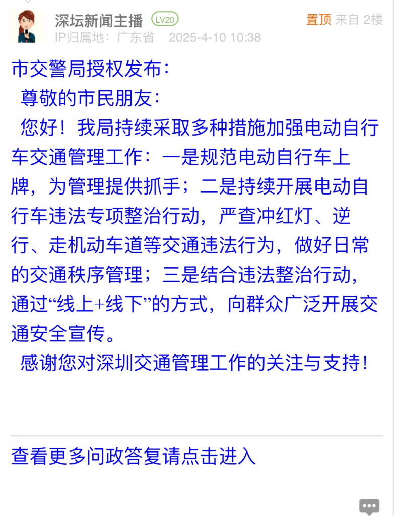 各職能單位如需對網(wǎng)友反映的問題進行回應,可在深圳論壇注冊官方賬號并通過認證,回帖進行回應。