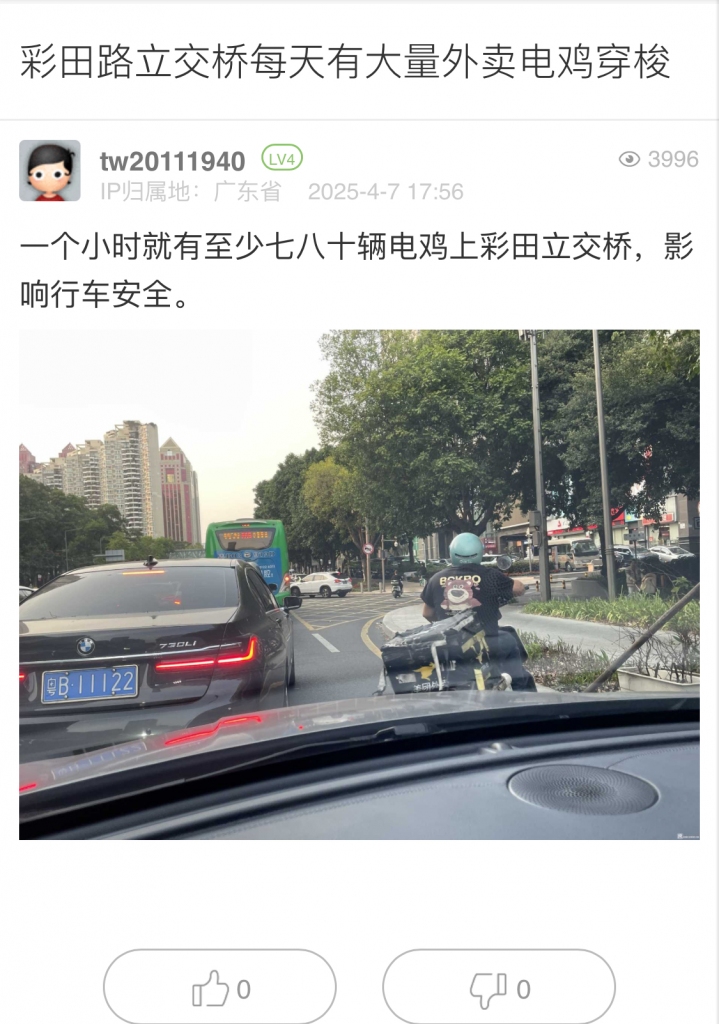 2. 帖文《彩田路立交橋每天有大量外賣電雞穿梭》