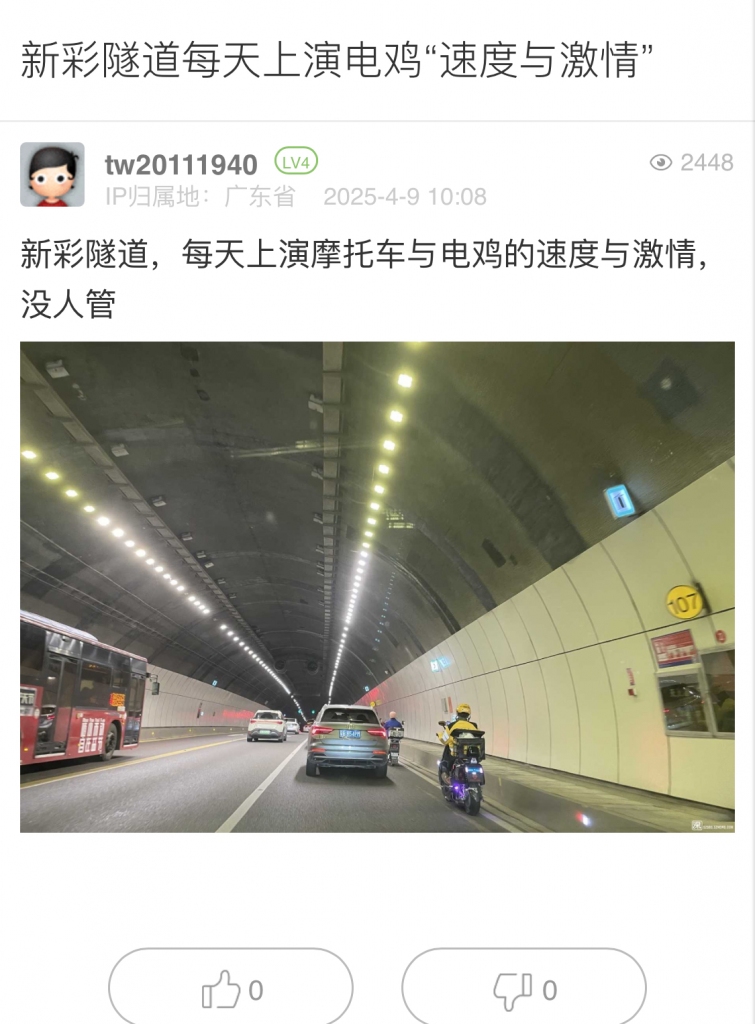 8. 帖文《新彩隧道每天上演電雞“速度與激情”》