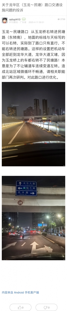 16. 帖文《關于龍華區(qū)(玉龍~民塘)路口交通設施問題的投訴》