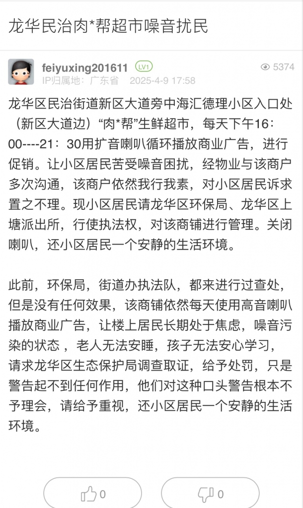 10. 帖文《龍華民治肉*幫超市噪音擾民》