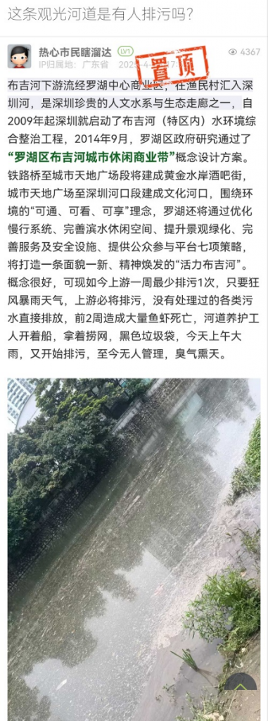 3. 帖文《這條觀光河道是有人排污嗎?》