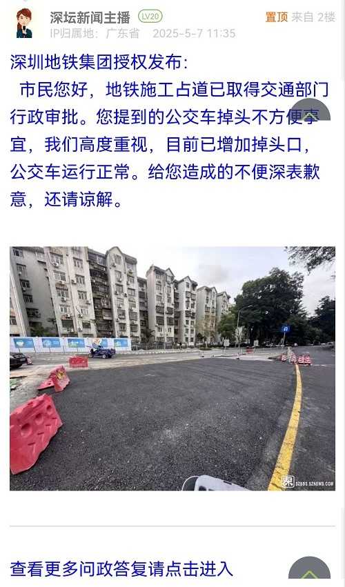 市民您好,地鐵施工占道已取得交通部門行政審批。您提到的公交車掉頭不方便事宜,我們高度重視,目前已增加掉頭口,公交車運(yùn)行正常。給您造成的不便深表歉意,還請(qǐng)諒解。