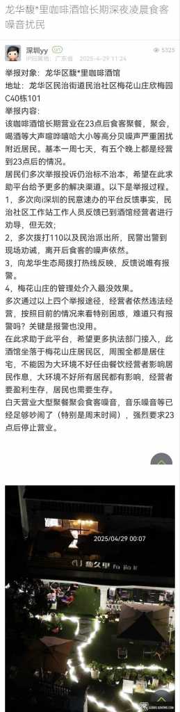 11. 帖文《龍華馥*里咖啡酒館長(zhǎng)期深夜凌晨食客噪音擾民》