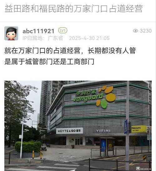 7. 帖文《益田路和福民路的萬家門口占道經(jīng)營(yíng)》