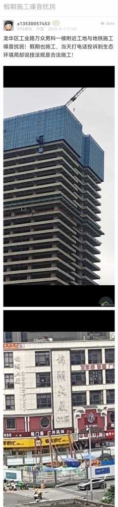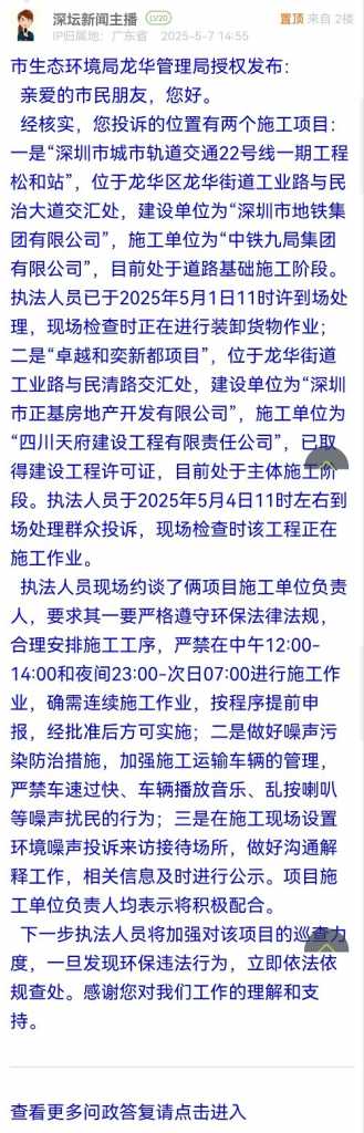 27. 帖文《南山區(qū)龍珠大道與龍珠三路交界工地,持續(xù)三年長(zhǎng)期噪音騷擾》