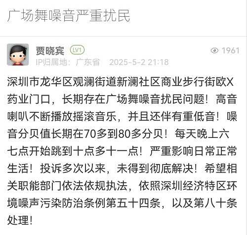 20. 帖文《廣場(chǎng)舞噪音嚴(yán)重?cái)_民》