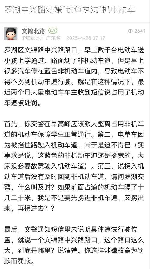 1. 帖文《羅湖中興路涉嫌“釣魚執(zhí)法”抓電動(dòng)車》