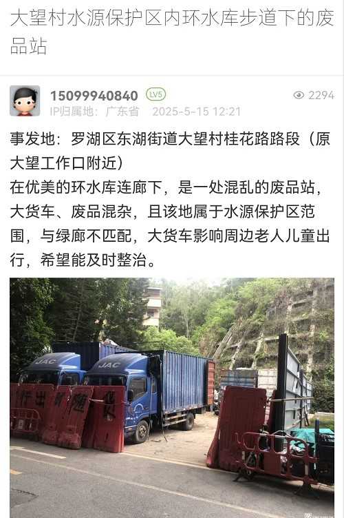 23. 帖文《大望村水源保護區(qū)內(nèi)環(huán)水庫步道下的廢品站》