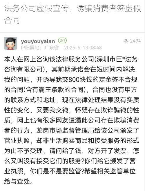 21. 帖文《法務公司虛假宣傳,誘騙消費者簽虛假合同》