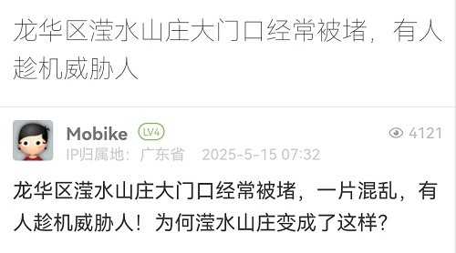 18. 帖文《龍華區(qū)瀅水山莊大門口經(jīng)常被堵,有人趁機威脅人》